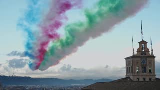 TRICOLORE DISEGNATO NEL CIELO DALLE FRECCE TRICOLORI ACCOMPAGNATI DALL`INNO DI MAMELI