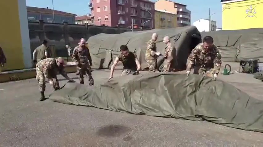 PROSEGUONO SPEDITI I LAVORI DELL’ESERCITO PER L’ALLESTIMENTO DI UN OSPEDALE DA CAMPO A PIACENZA